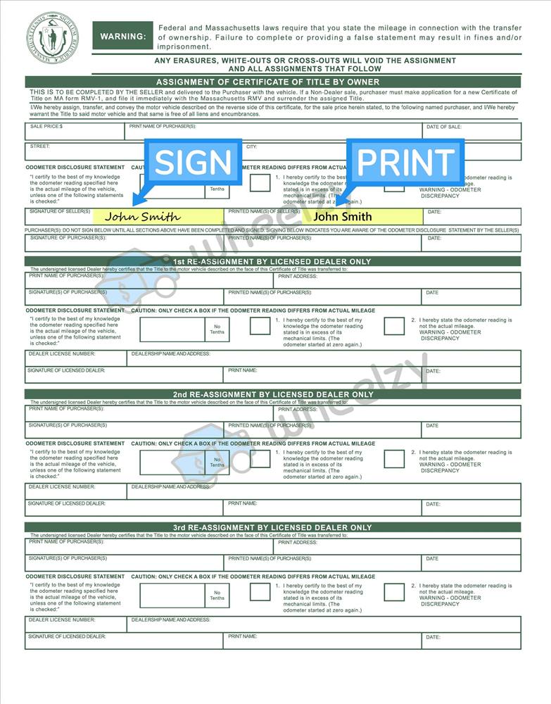 Be sure to write clearly and sign/print your name exactly as spelled on the front of your title. Avoid white-out, scribbles, and strike-throughs.