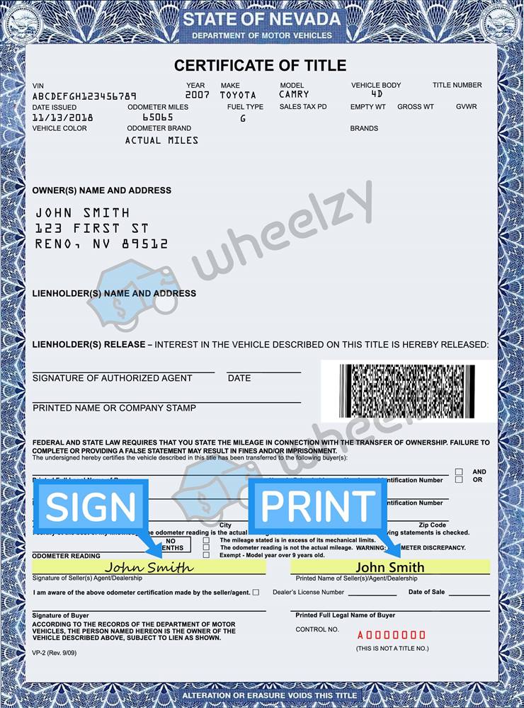 If your Nevada title shows a lien or a bank name printed on the front, then your title will need to be signed off by the lien holder or have a separate lien release letter.