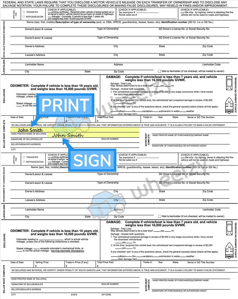 If your South Dakota title shows a lien or a bank name printed on the front, then your title will need to be signed off by the lien holder or have a separate lien release letter.